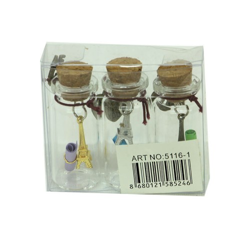 DİLEK ŞİŞESİ   Ürün Özellikleri   Dilek Şişesi modelidir. Tamamı cam malzemeden üretilmiştir. 1 pakette 3 adet mevcuttur.   Ürün Ebatları    Çap: 2 cm  Yükseklik: 5,3 cm   Paket İçeriği   1 Adet Dilek Şişesi